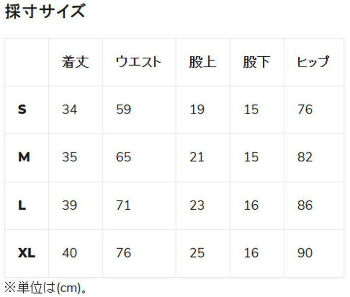 ※サイズは、メーカーサイズチャートとなります。