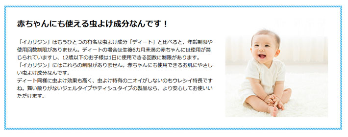 虫よけ成分〈イカリジン※〉を15%配合したことにより、虫よけ効果が長持ちします。