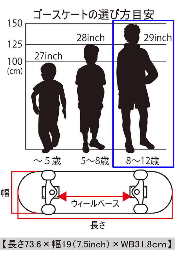 ●サイズ:29インチx7.5インチ(長さ73.6cm×幅19.0cm×WB31.8cm)