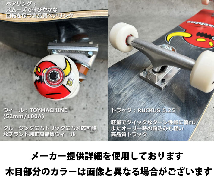 ベアリング:ハイパフォーマンス・ベアリング仕様(TOY MACHINE、FOUNDATION、PIGのいずれかのブランドベアリングが装着されております)