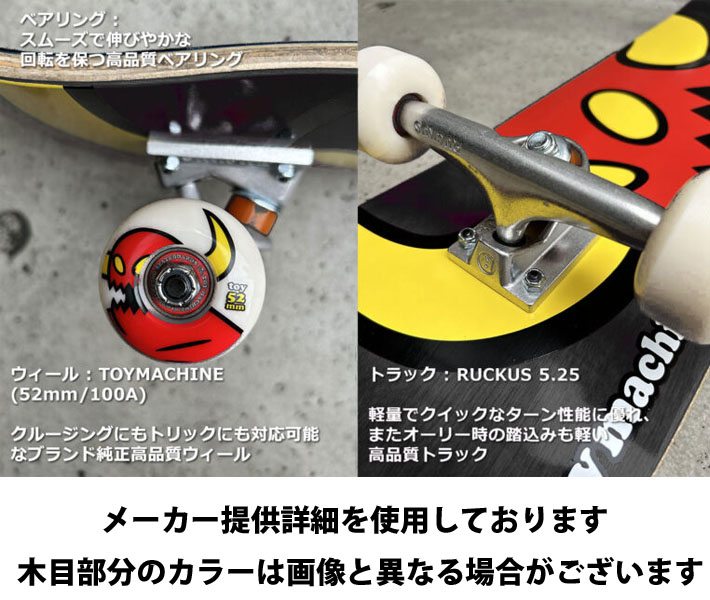 ベアリング:ハイパフォーマンス・ベアリング仕様(TOY MACHINE、FOUNDATION、PIGのいずれかのブランドベアリングが装着されております)