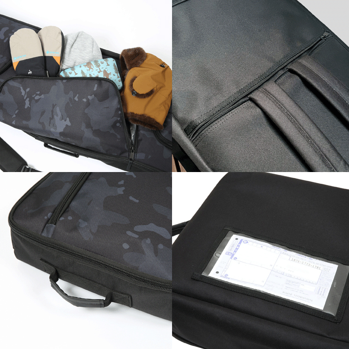 ・3つの個室で分別収納、大容量のボックス型スノーボードケース。