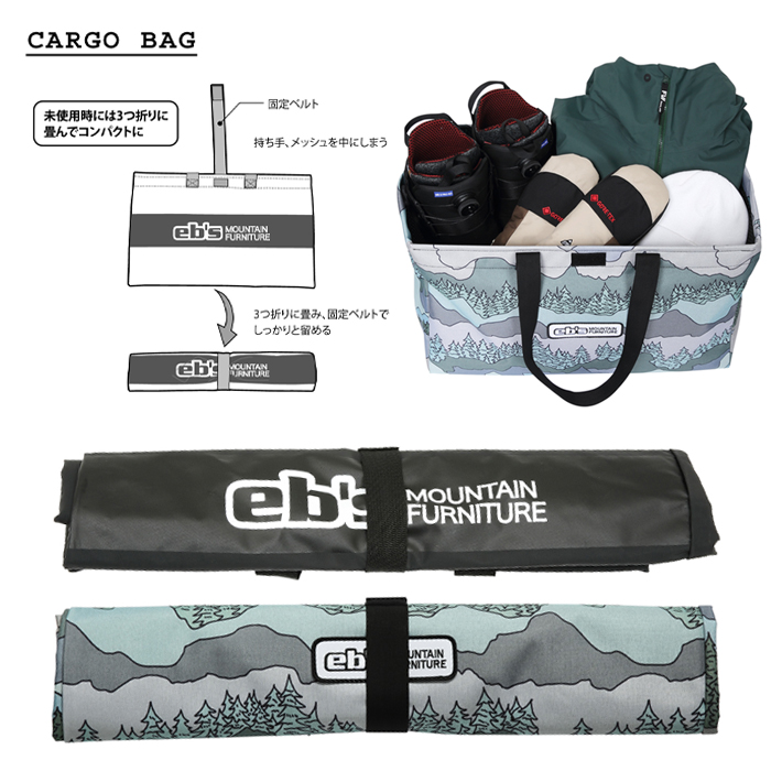 ・持ち運びに便利なメッシュ付きカーゴバッグ。