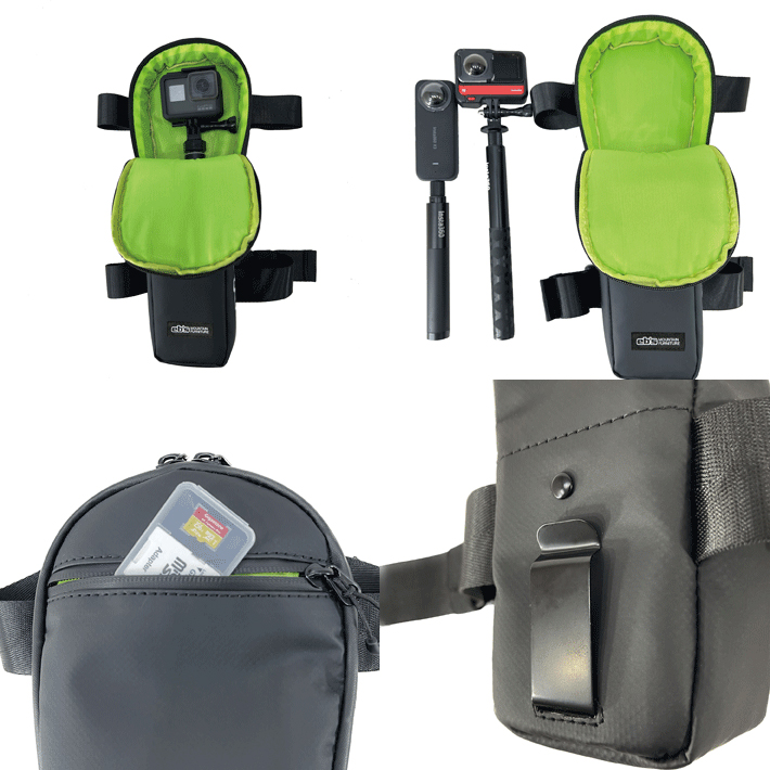 自撮り棒を使いたいけど撮影しないときの収納場所に困る、バッグパックは背負わないけどアクションカメラを持って滑りたい... そんな方へ向けたケースです。
