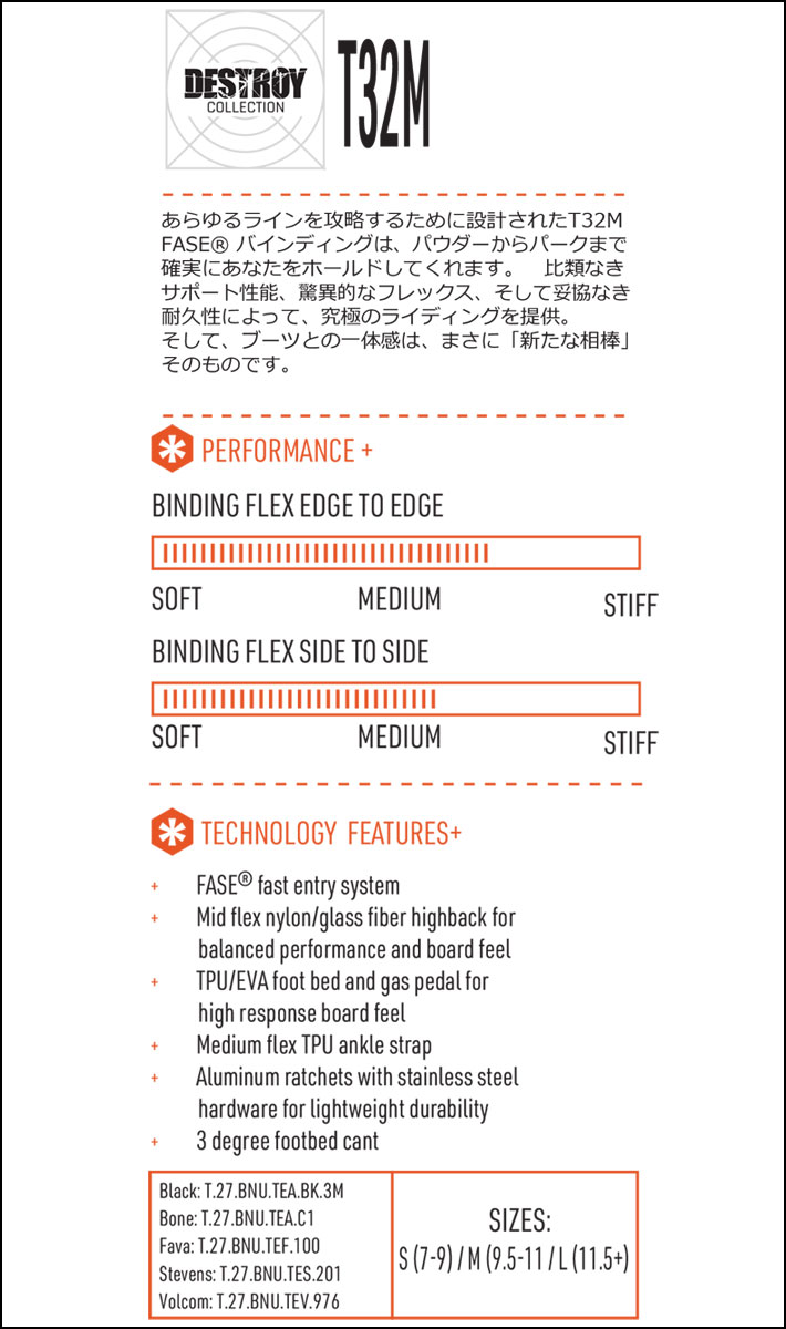 あらゆるラインを攻略するために設計されたT32MFASEバインディングは、パウダーからパークまで確実にあなたをホールドしてくれます。