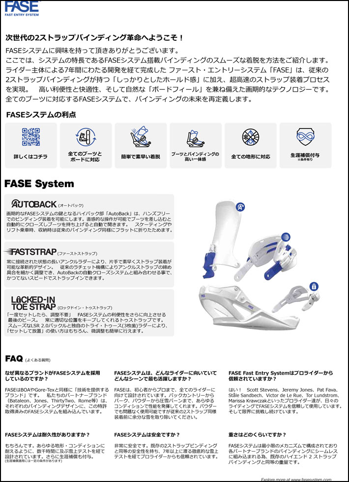 軽量性とワンタッチ装着を同時に実現した【FASE ENTRY SYSTEM】を搭載
