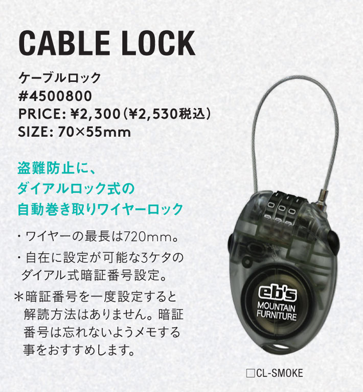 盗難防止に、ダイアルロック式自動巻き取りワイヤーロック