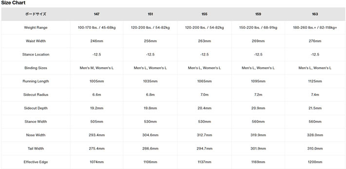 ブーツサイズが28~31cmの方はもちろん、25cmや27cmの方でもしっかり楽しめるボードです。