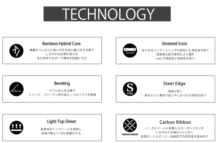 彼ら二人にしか分からない領域で考案したスノーボードはグラトリシーンに最も適した設計となりあなたの最高のパートナーとなるでしょう。