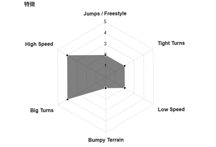 度重なるテストを経て柔らかめに調整されたテールフレックスが3D地形での切り返しとグリップの良さ、そしてより洗練されたしなやかさを提供する。