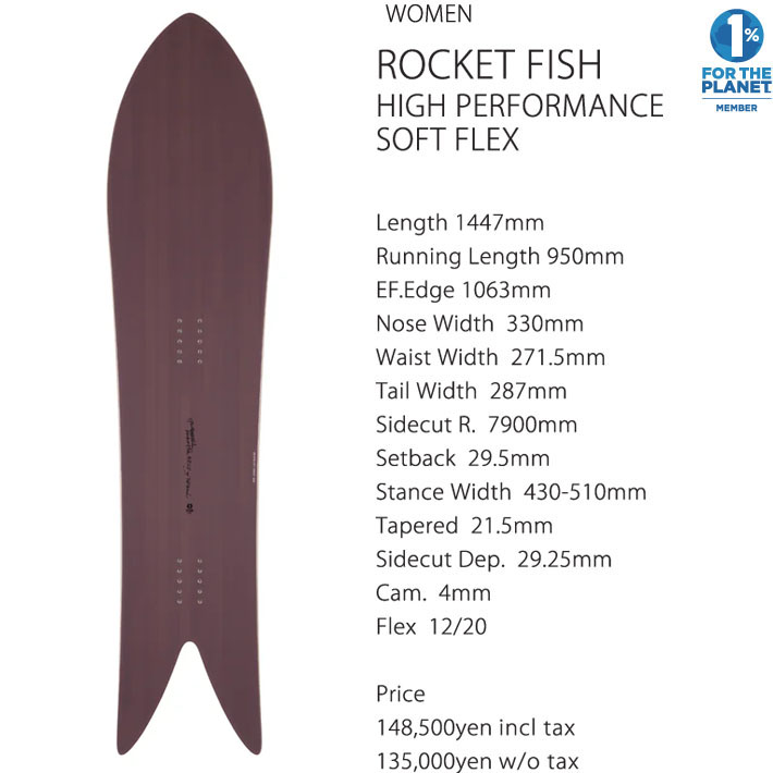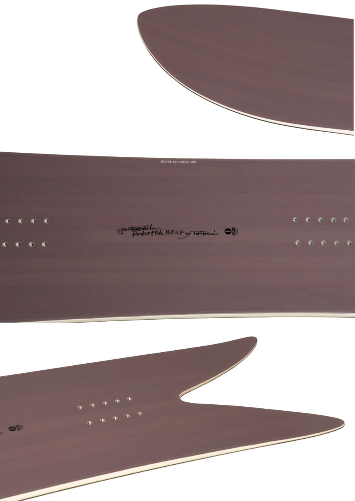 アウトラインは "ROCKET FISH HIGH PERFORMANCE" と同様のシェイプであり、細身のアウトラインからテーパーを持たせる事によって、より様々な状況下でのコントロール性を上げている。