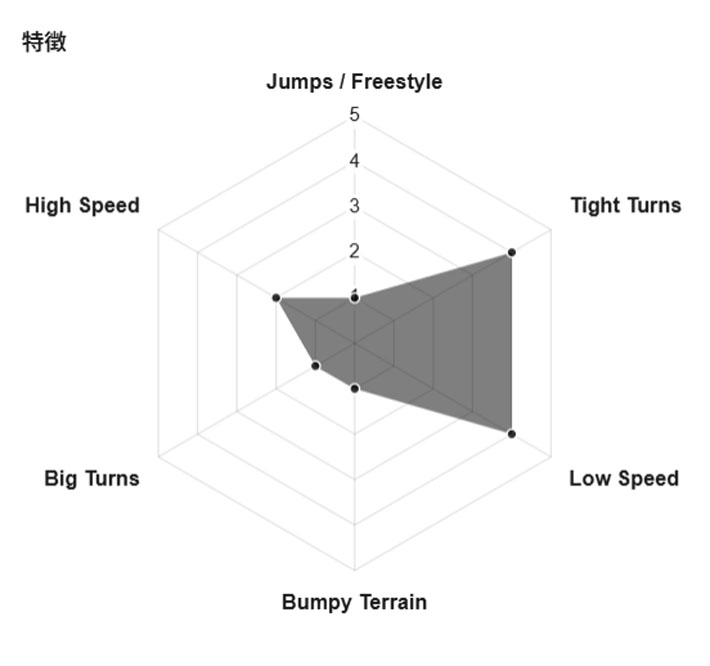 ダウンザラインの早い波に乗るイメージと重なるこの板のライディングイメージは、ゲレンデ横のバンク、ナチュラルパイプでは波の上と同じように泳ぎ回り、グルームランではスピードをロスしない肘や顎が擦れるほどカーヴィングでスキー場を跳ね回る。