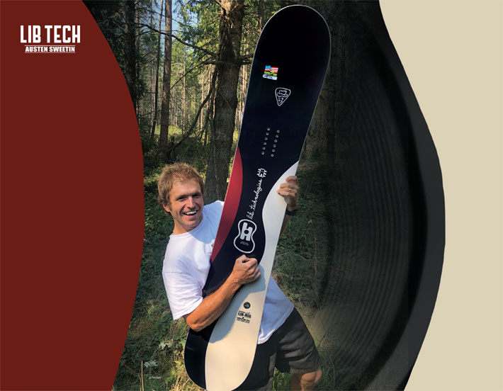 オースティン・スウィーティンのLib Rigは、フルサイズながら 流線型のノーズとスイッチ機能的なテール、深いカービングサイドカット、つま先が引っかからないウエスト幅、そしてマイルドなテーパーが特徴です。
