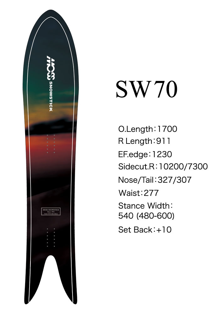 70SWのテール形状は程よいフレックスを残してありターン後半でのコントロールをしやすく設計されている。