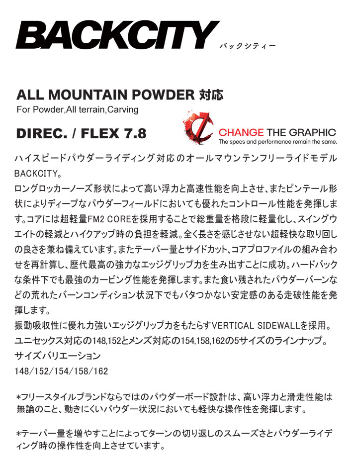 ハイスピードパウダーライディング対応のオールマウンテンフリーライドモデルBACKCITY。
