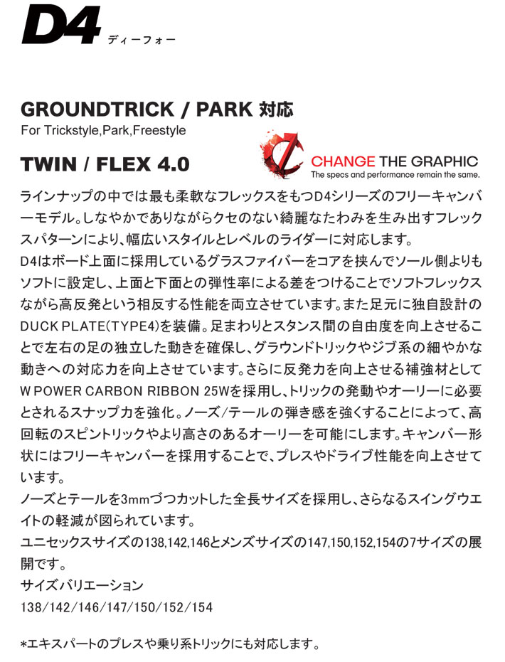 ラインナップの中では最も柔軟なフレックスをもつD4シリーズのフリーキャンバーモデル。