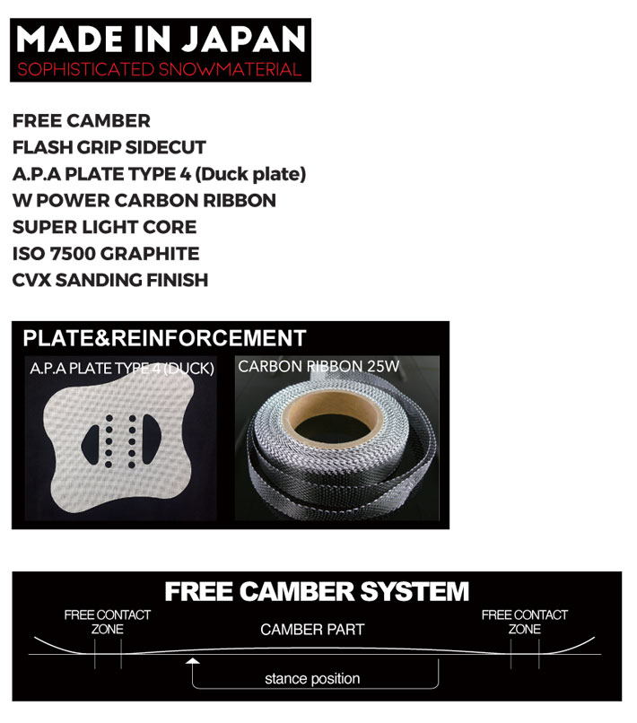 FACTORYの持つ長い歴史のなかで培われた高い技術と蓄積された膨大なデータに、リアルタイムの情報と独自の設計理論が組み合わされて作り上げられたそのボードは常に性能とクオリティーを重視し、最高のパフォーマンスをライダーに提供します。