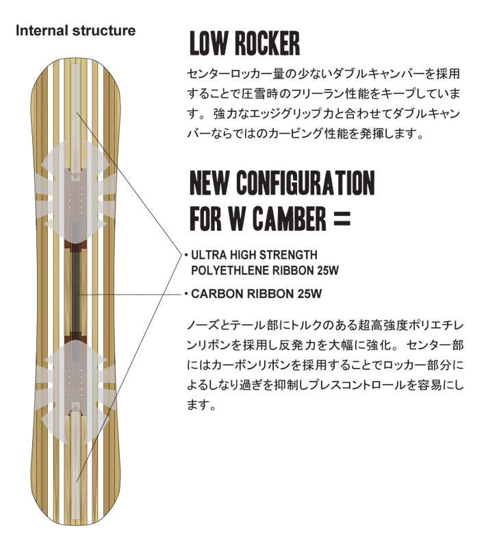 これにより抜群の操作性とドライブ性能を誇るダブルキャンバーモデルでありながら、強力な反発力と高い滑走性能を融合させています。
