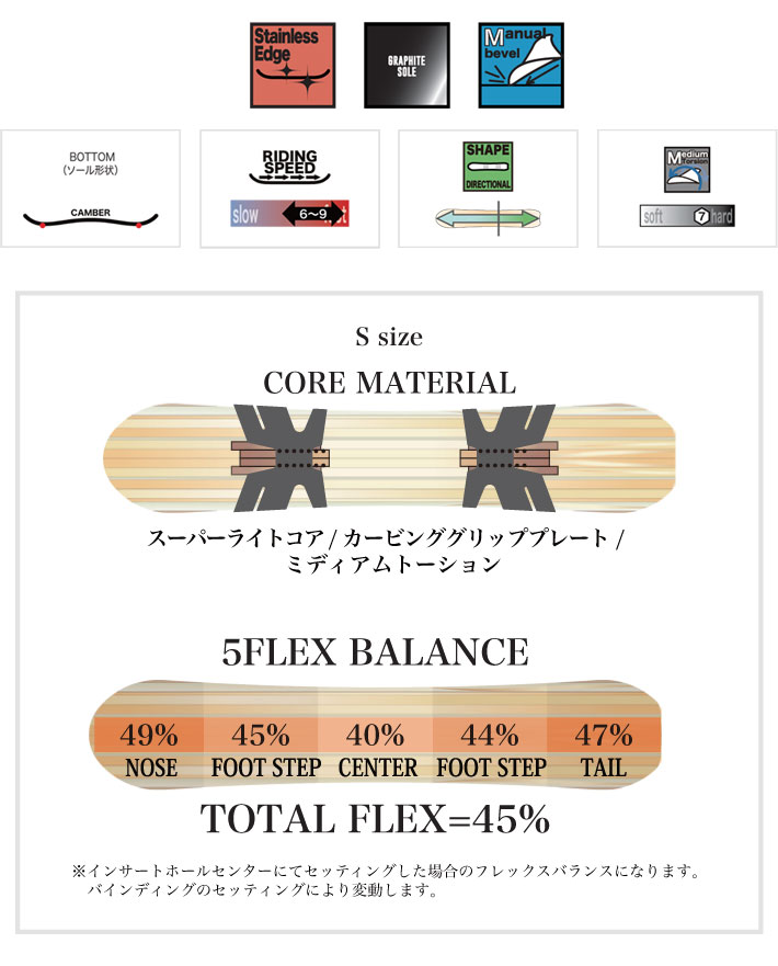 ターンの安定性と雪上での自由度、その両方を高次元で両立させた“大人のボード”です。