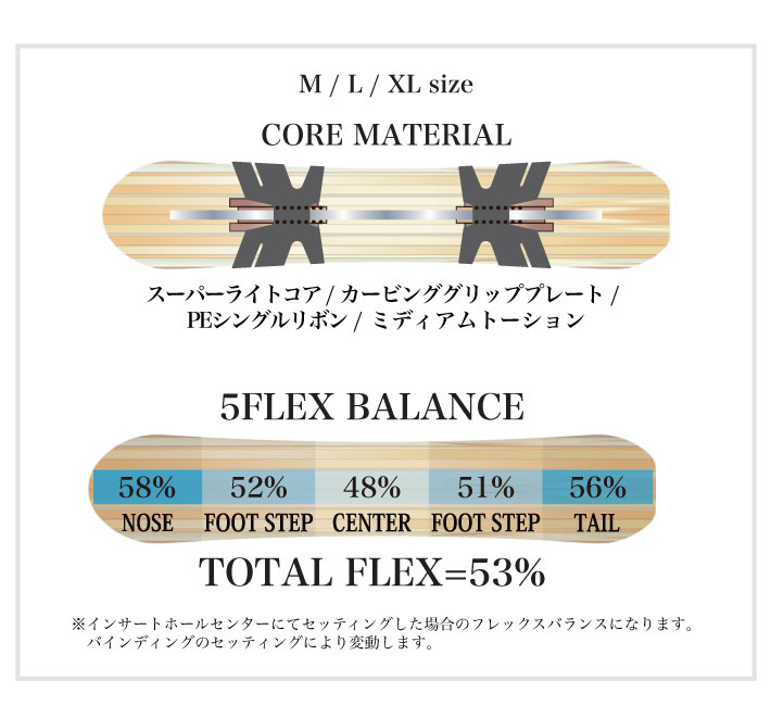 癖のない滑り心地を実現するためにとても軽く、フレックスバランスの精密な調節がしやすい物を使用しています。