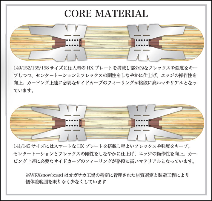 WRXsnowboard には全てオリジナルアウトラインが使用されています。