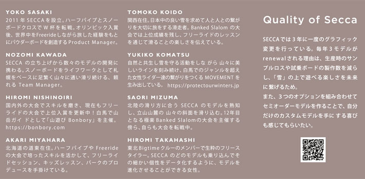 「SECCA」雪花=古くからの日本の言葉で美しい雪の姿を意味する。