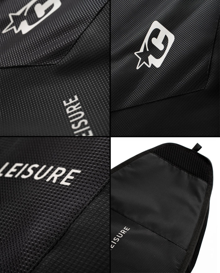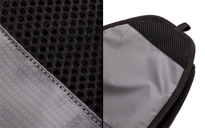 サーフボードを5mmのウレタンパッドでしっかり保護し、軽量素材により持ち運びもしやすい。