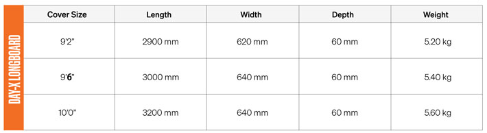 新登場のFCS Day Xカバーは、600Dリップストップ素材、ノーズ+テール衝撃吸収ゾーン、収納コンパートメント、7mm穴あきフォームパッドなど豊富な機能を搭載し、デイバッグカテゴリーにおいて「最高峰」の性能を実現。