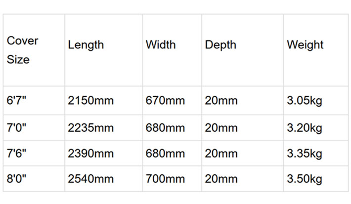 【8'0"】2540mm / 700mm / 20mm / 3.50kg