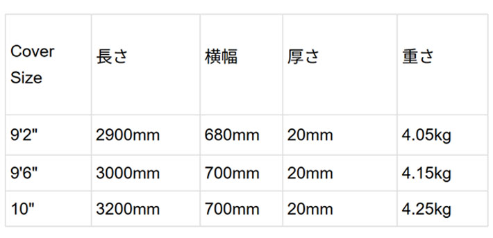 ※公式サイトの画像、サイズ表記を使用しております。お持ちのボードサイズや形状により、記載のサイズ内で収まらないサーフボードもある場合がございます。 ご不明な点はお問い合わせください。
