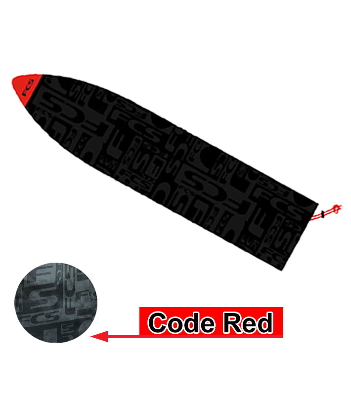 新開発のコードレッドフィン、リーシュ、デッキグリップ、ストレッチカバーすべてが力強い炎のような赤で統一されています。