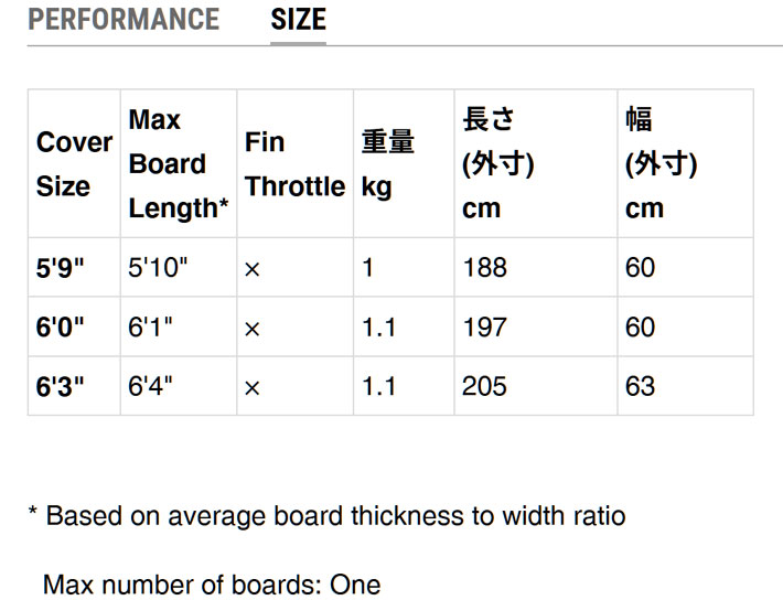 ※メーカー提供サイズです。お持ちのボードサイズや形状により、記載のサイズ内で収まらないサーフボードもある場合がございます。