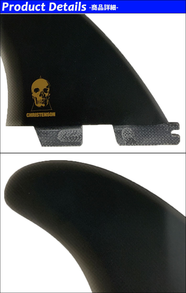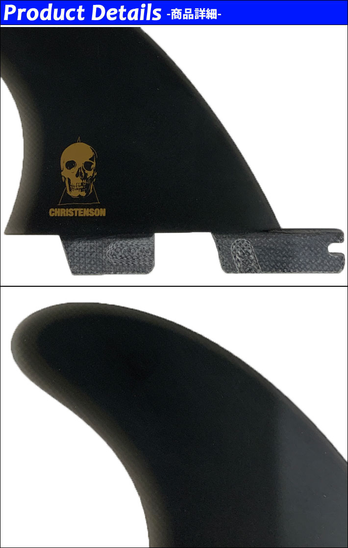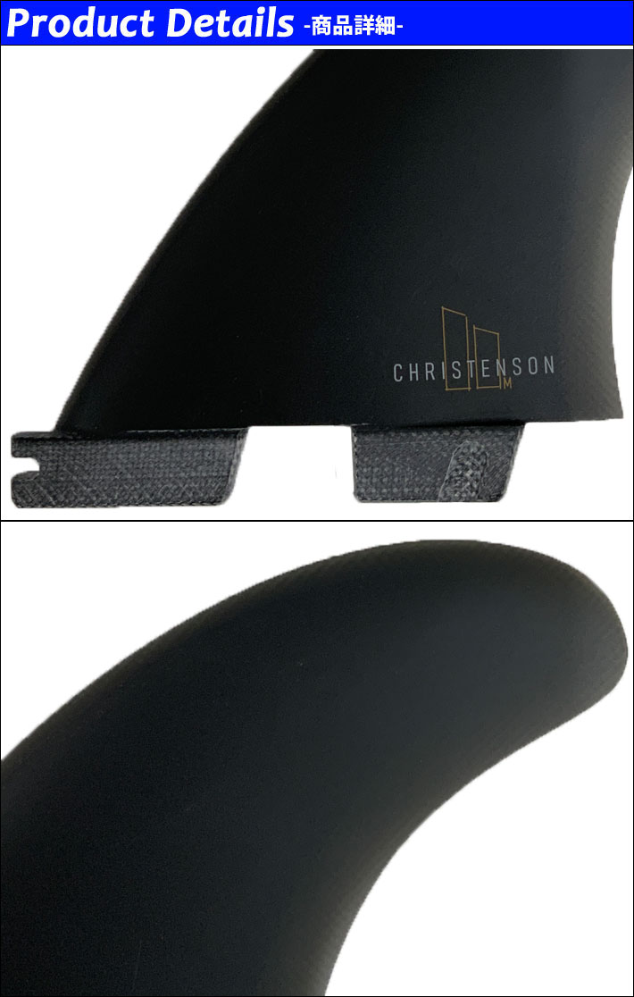PG素材は、クリステンソンが彼の様々なボードモデルに使用するために選びました。PCフィンより若干重いものの、PG素材はターンやカーブをドライブする際にしっかりとしたつながりのあるフィーリングを提供します。