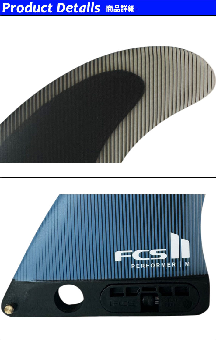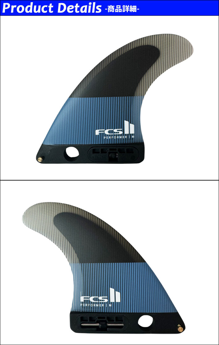 パフォーマーシングルフィンは、標準的なパフォーマーのスラスターフィンにFCS IIトゥーレスLBフィンをベースにしています。このフィンを使用することで、フィンボックス付きのボードをスラスターセットアップに変えることができます。