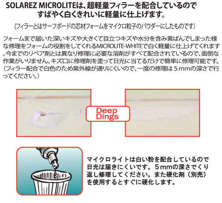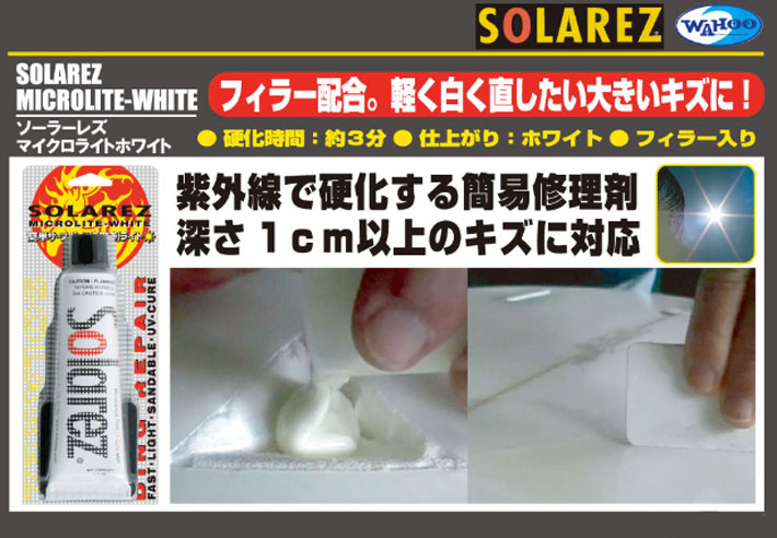 SOLAREZ MICROLITEは、超軽量フィラーを配合しているので素早く白く綺麗に軽量に仕上げることができる