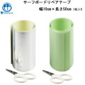 透明素材の為、サーフボードに張り付けても目立たない。その上、テープを張り付けたままワックス掛けも可能。