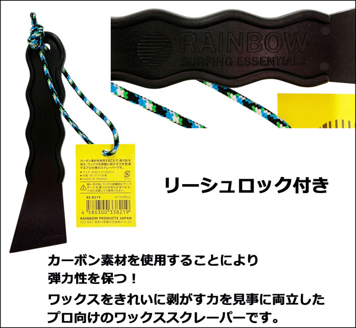 ワックススクレーパー RAINBOW レインボー WAX SCRAPER & リーシュロック ワックス落とし スクレーパー メンテナンス ワックス剥がし スクレイパー サーフィン サーフボード 日本正規品