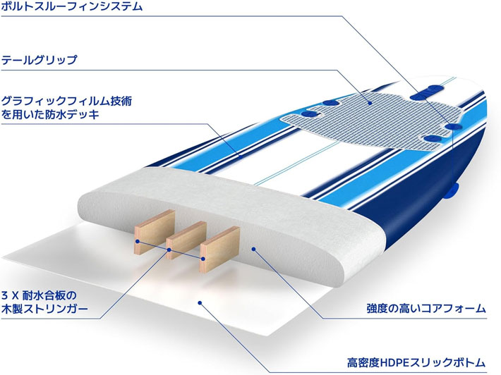 ・フィン(差し込み)、リーシュコード、デッキパッド付き