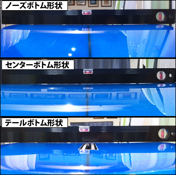 【ボトム形状】ノーズ ~ テール:浅いシングルコンケイプ