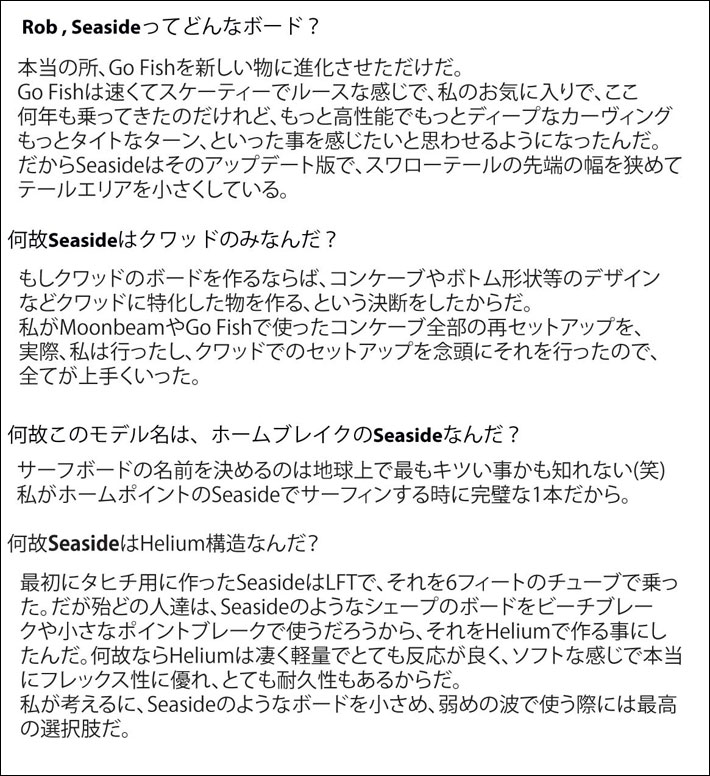 だが殆どの人達はSEASIDEのようなシェープのボードをビーチブレイクや小さなポイントブレイクで使うだろうから、