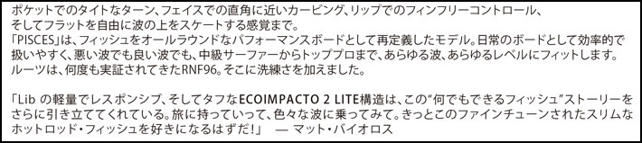 「PISCES」は、フィッシュをオールラウンドなパフォーマンスボードとして再定義したモデル。