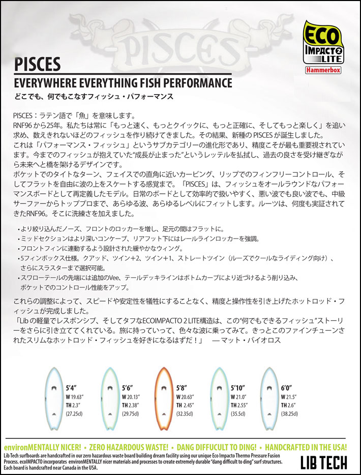 LIBTECH サーフボード リブテック PISCES 5’11 / 6’1 パイシーズ フィッシュ FISH サーフィン ショートボード [営業所止め送料無料]
