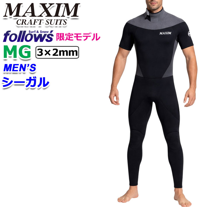 follows限定 2026 MAXIM マキシム ウェットスーツ [MGモデル] シーガル BACK ZIP バックジップ メンズ ウエットスーツ 3mm × 2mm スーパーストレッチジャージ 国内生産 日本正規品